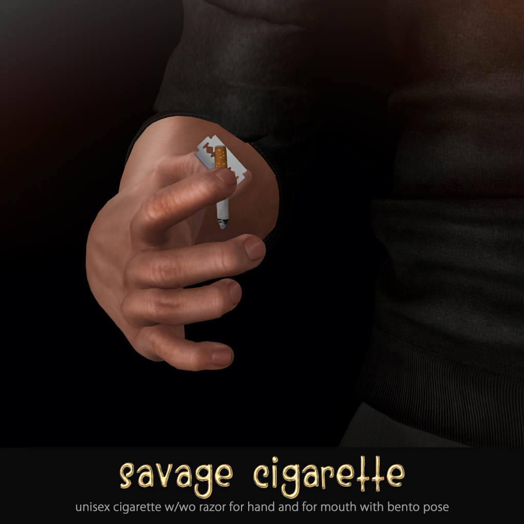 One of 2 unisex versions of Savage Cigarette (the standard one for mouth with pose), available at